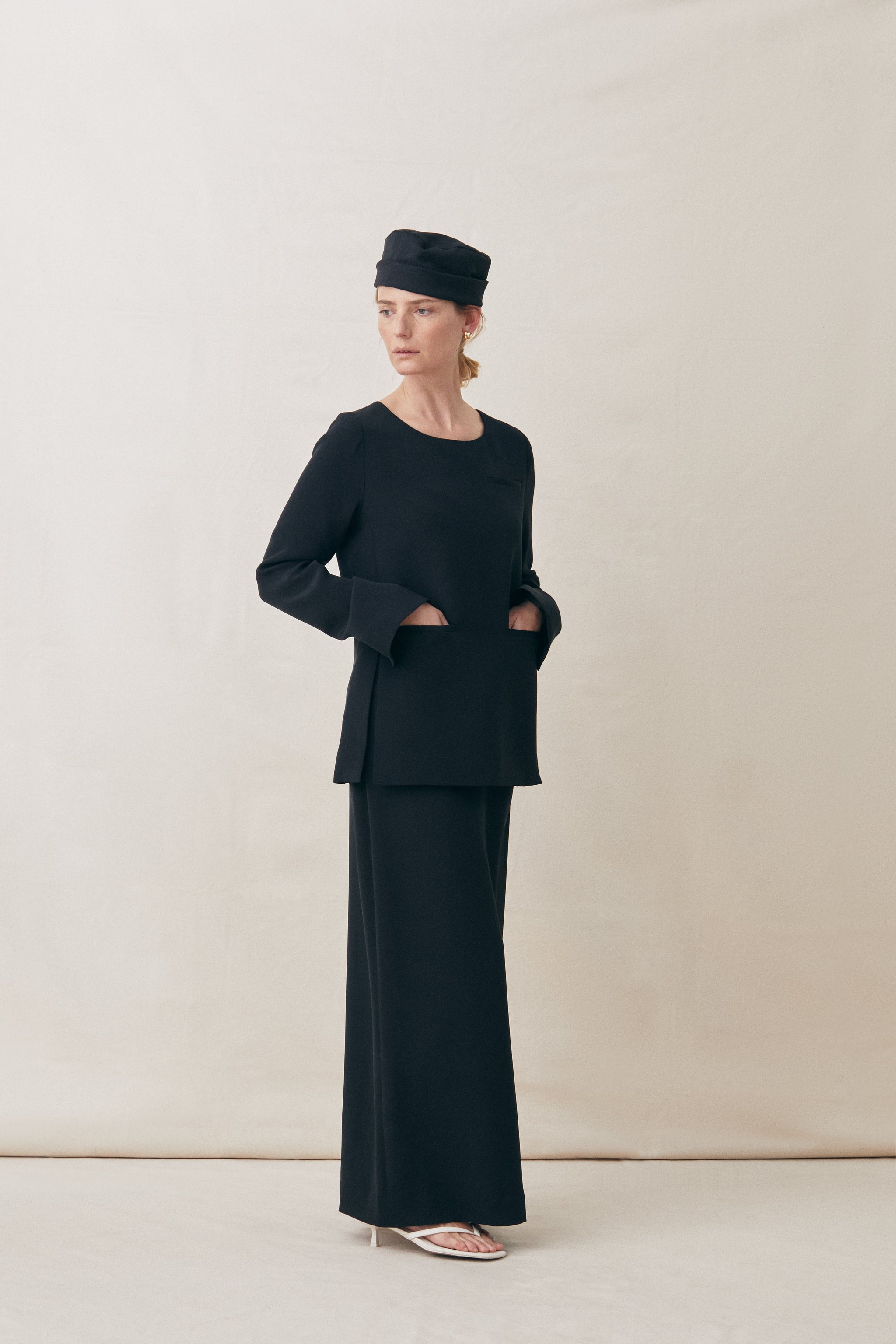 Straight-body, oversized pullover blazer with slits at the sleeve cuffs. Crafted from our specialty fabric, 200-weight Crêpe de Chine peace silk — a substantial silk with fluid drape.