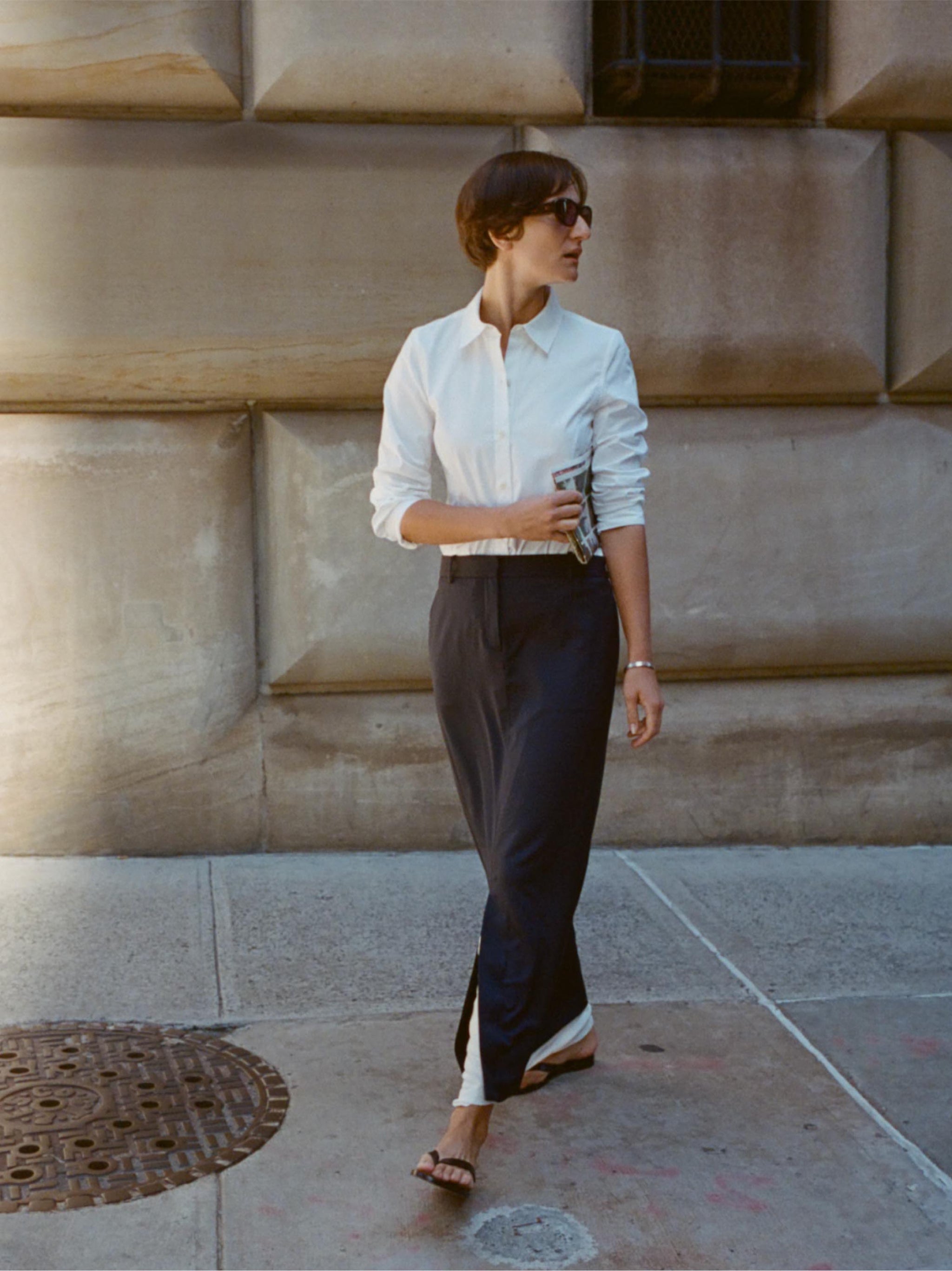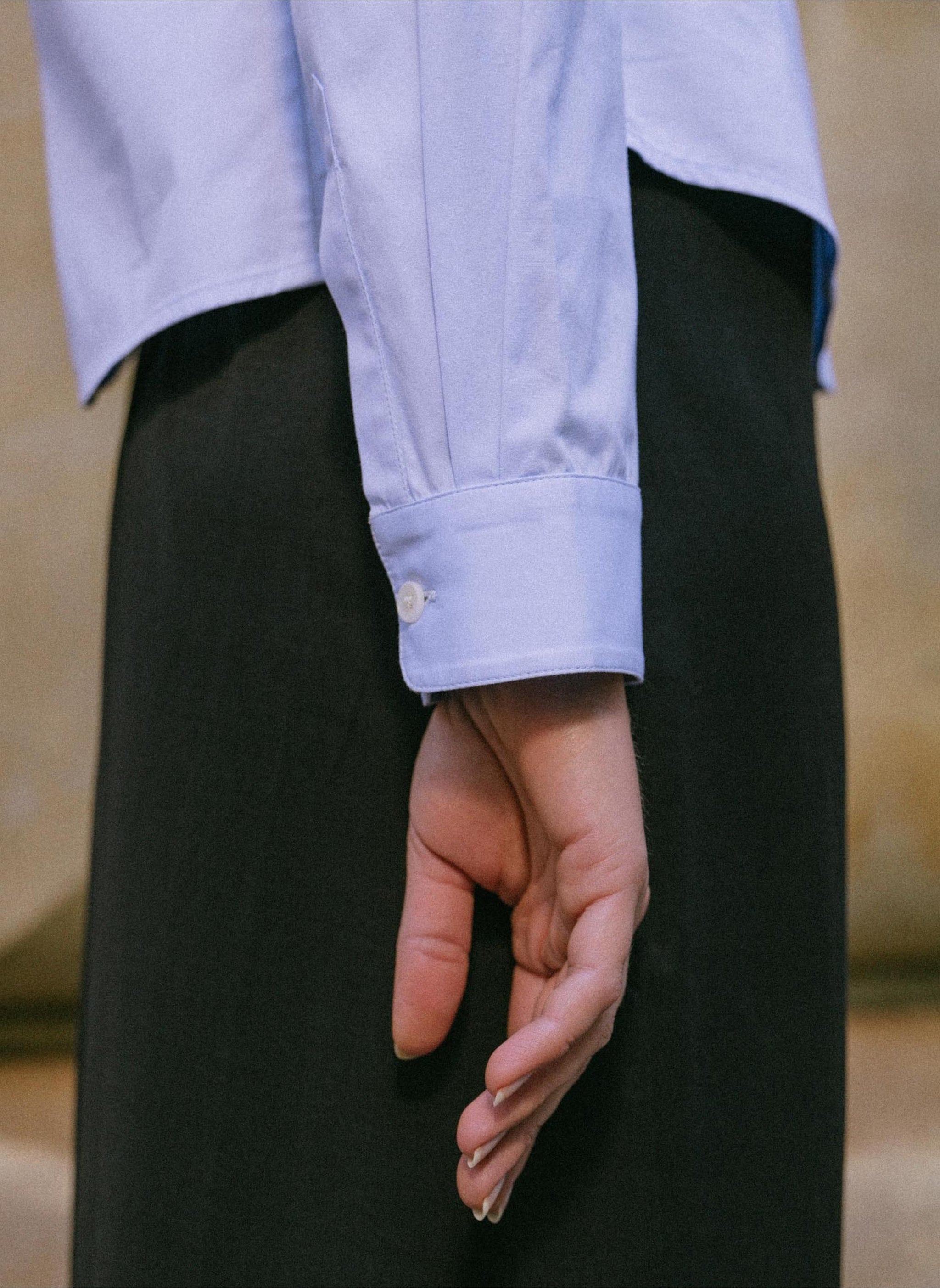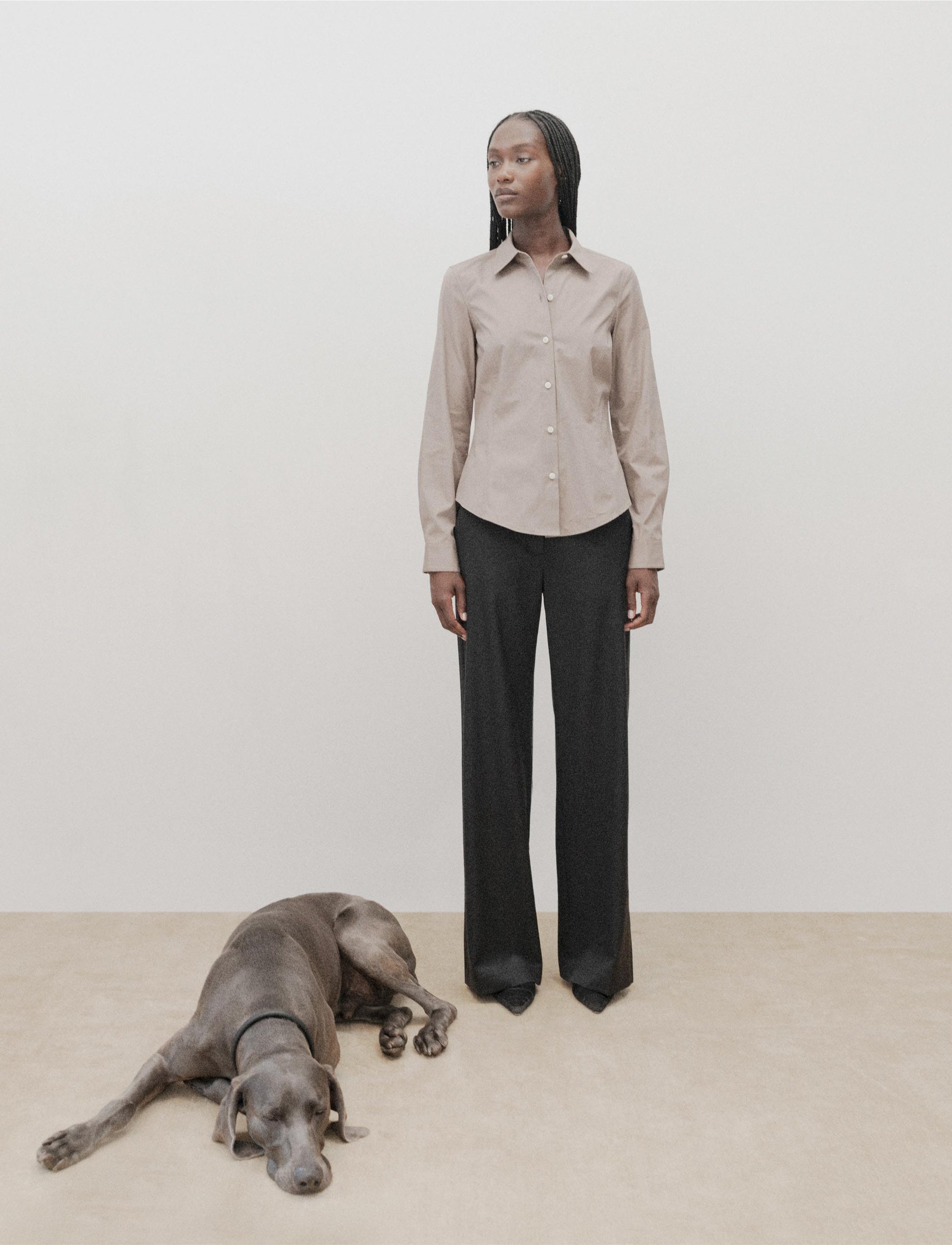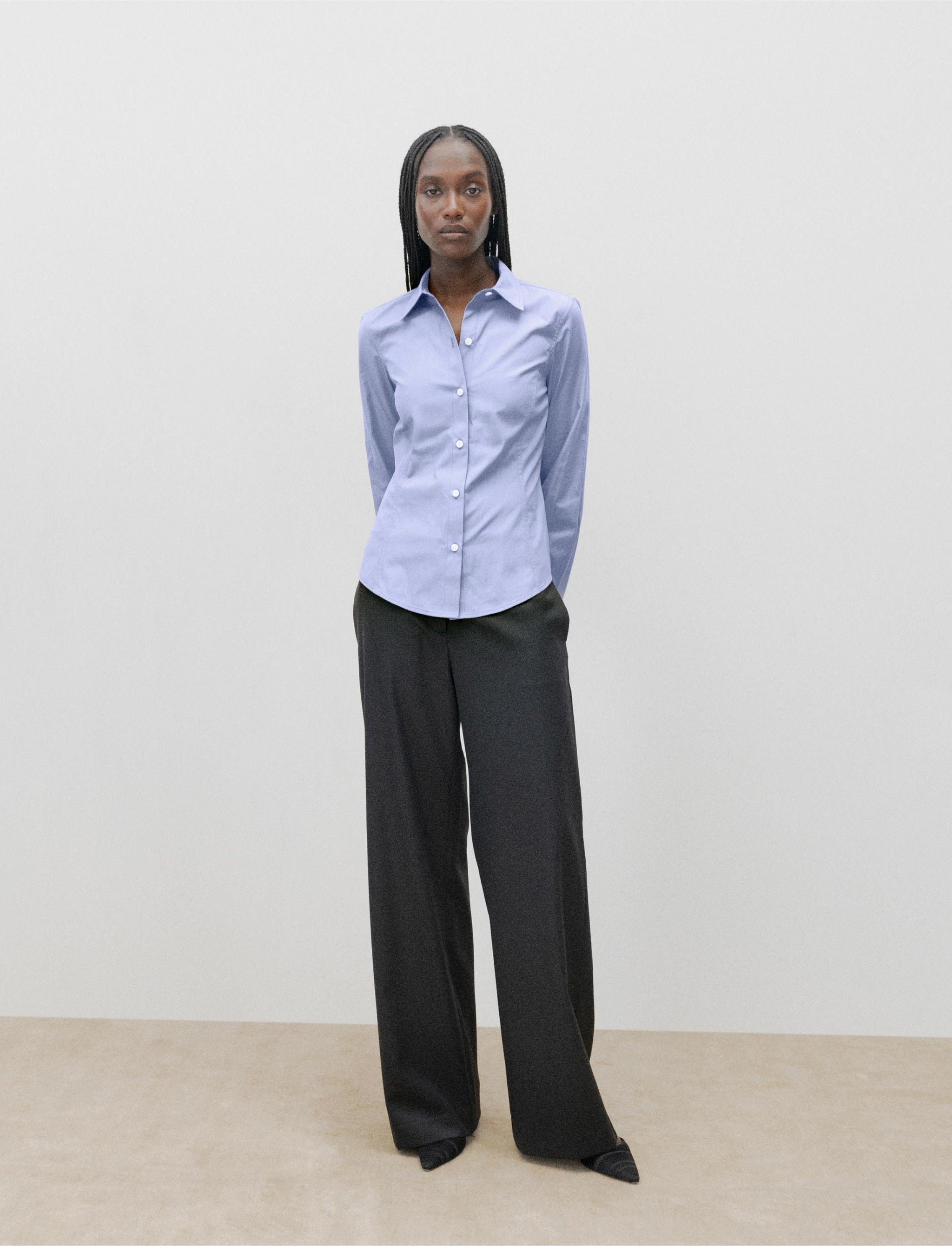 Button-up with princess seams to shape the sides, in our fine regenerative poplin.